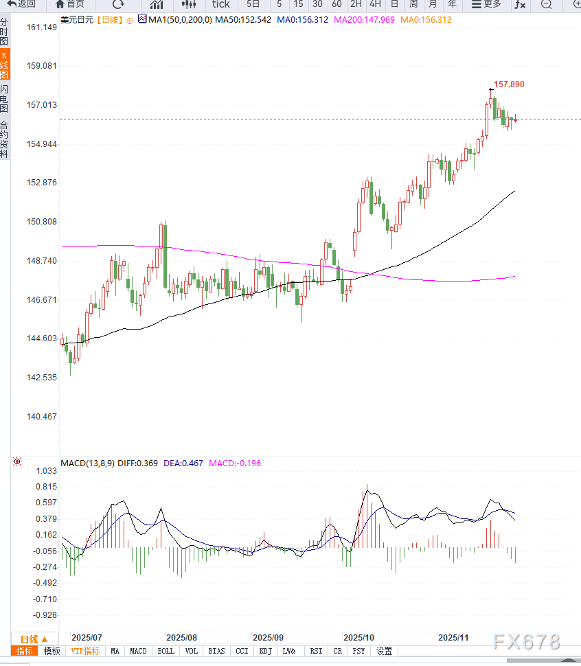 从技术面看,美元兑日元要进一步拉升,需要有效突破156.50的关键均线阻力。若价格企稳这一位置,上方将指向157.00和157.50的区间,最终目标可能触及158.00附近的上周高点。