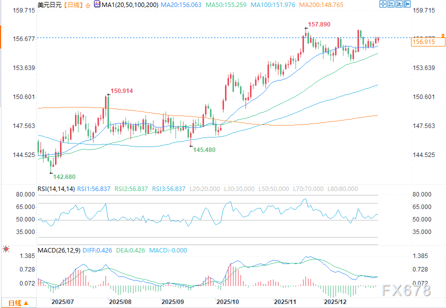 从技术形态来看,美元兑日元汇率持续录得“更高的高点”与“更高的低点”,且关键心理关口对汇率的吸引力极强,其中150日元关口便是典型代表,该价位在年内多次对汇率走势产生关键影响。