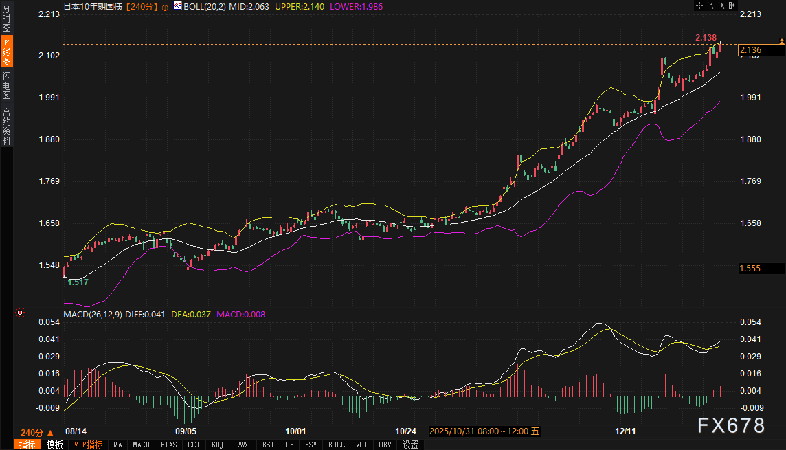 当前市场基本面由两大核心叙事主导:美债的区间僵持与日债的历史性突破。知名机构分析指出,周二隔夜交易中,美债正处于一场“拉锯战”之中。一方面,日债收益率刷新多年高点,对全球债券收益率构成上行牵引;另一方面,德国通胀数据显示价格压力放缓,提振了德债需求,对美债收益率形成些许下拉力。这种多空力量交织使得10年期美债收益率被限制在4.17%-4.19%的狭窄区间内,总体仍处于近期高位区间(4.08%-4.20%)的上端。市场普遍认为,在周五美国非农就业数据公布前,这一区间可能难以被有效突破。