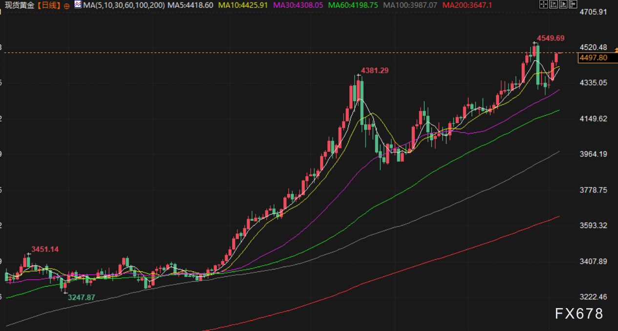 周三(北京时间1月7日)亚市早盘,现货黄金持续走高,逼近4500美元/盎司关口,受地缘政治紧张局势升级提振避险需求,