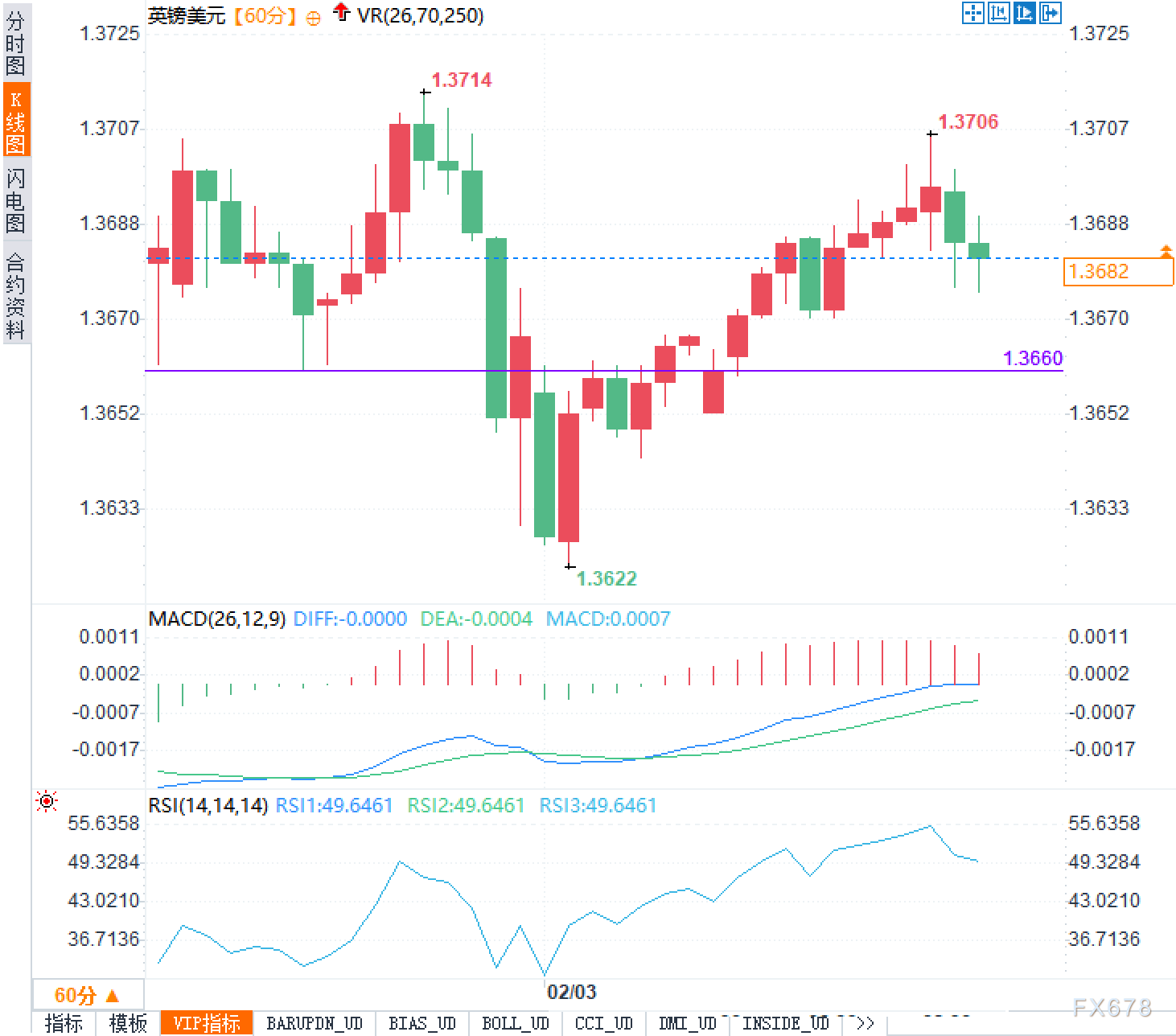 从技术图形来看,英镑兑美元正处于关键的方向选择阶段。60分钟图显示,价格此前两次尝试上攻均告失败:一次触及1.3714后回落,另一次在1.3706附近遇阻,显示出1.3710区域存在较强的短线供给压力。若未来能有效突破并站稳该水平,上方空间或将打开,挑战更高的阻力位。而下方支撑则集中在1.3660一带,若失守,则可能进一步测试前低1.3622附近的防守区域。